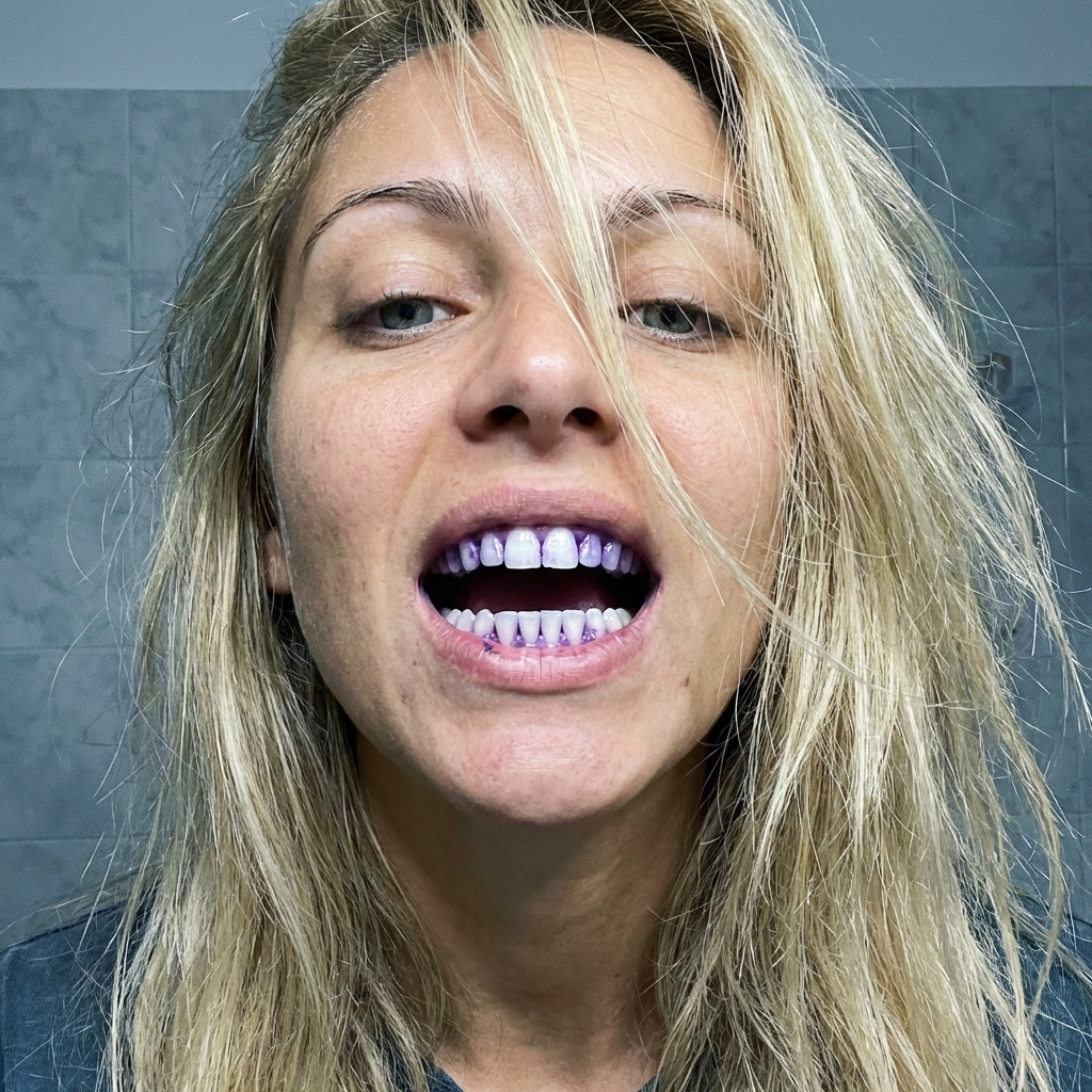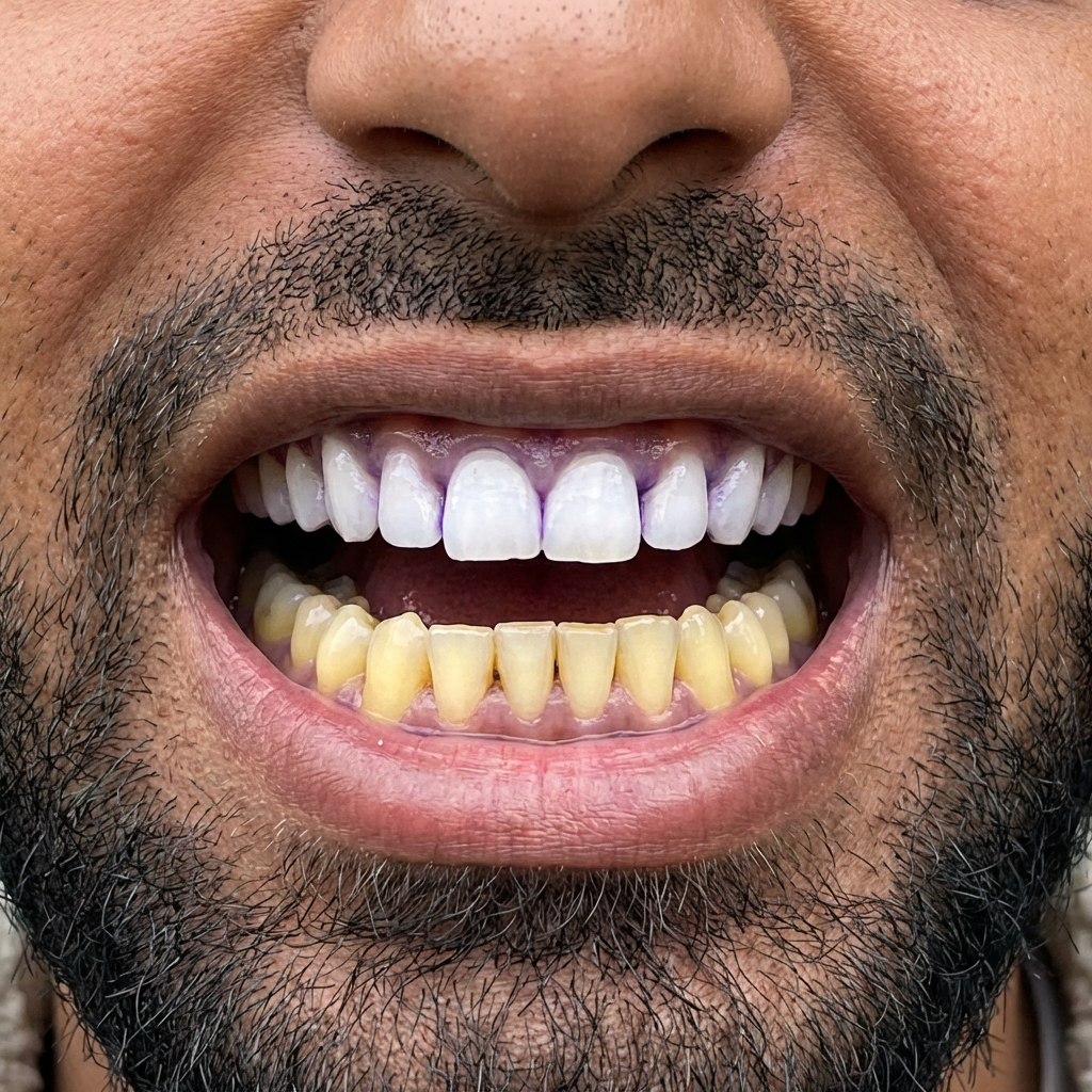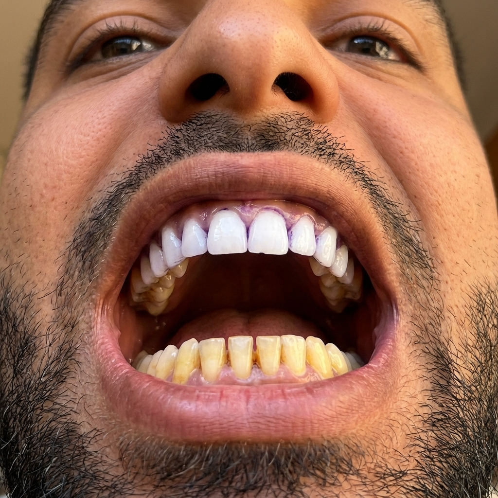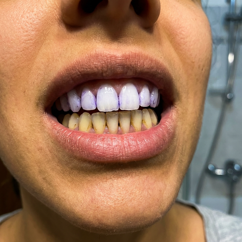 A nossa tecnologia violeta corretiva neutraliza os tons amarelados ao contacto, para um sorriso imediatamente mais luminoso.